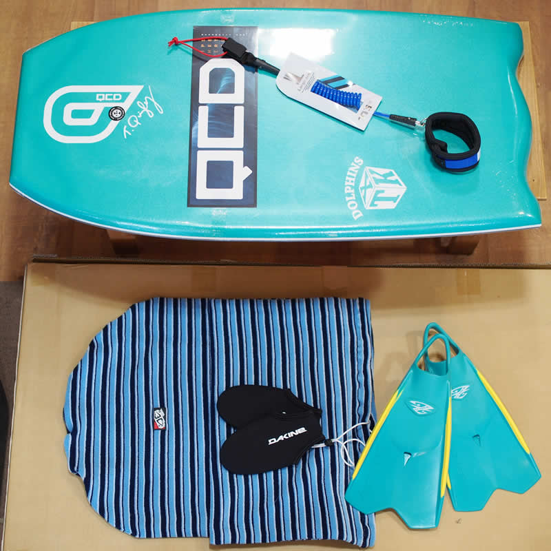 セットの内容 (ボディボードのスタートに必要なギアを全てセットしています)価格は税別 ●ボディボード QCD TK-X 43000円 ●ゼベックフィン 1足 9600円 ●コイルリーシュ 3800円 ●ニットケース 4200円 ●フィンソックス 2500円 ●ドルフィンズステッカー 貼るだけで上手くなるかも!? ●さらに次回ウエットオーダー時に使える3000円割引券付! |