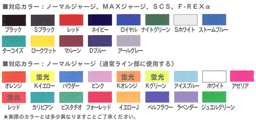 素材ごとに選べるカラーが違います。ズームジャージは21色、SCSとネッスルプラスは14色からお選びください。 |